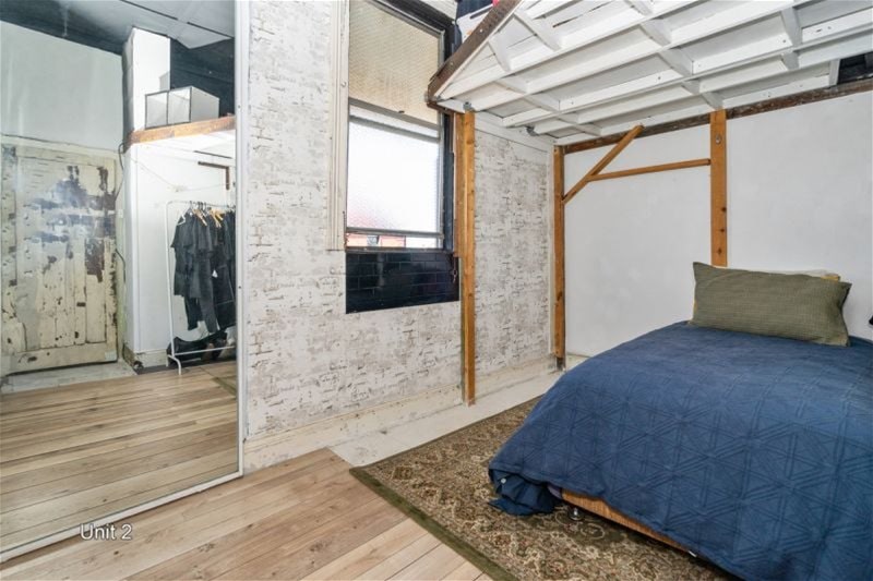 The main upper-level apartment retains original features, including hardwood