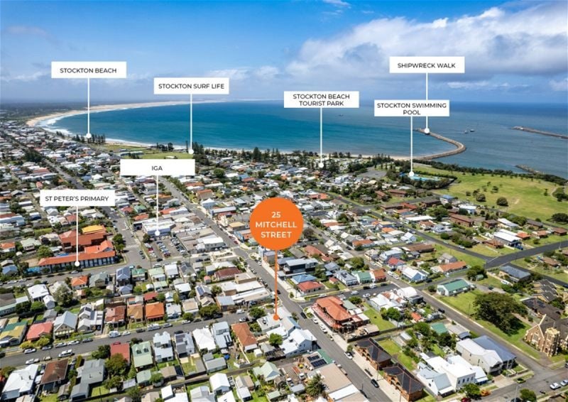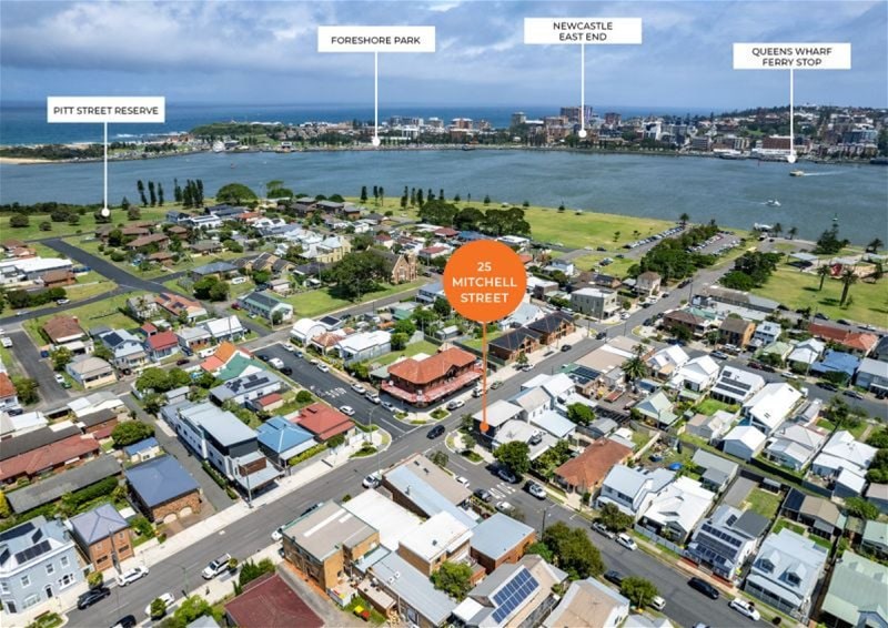 Newcastle Harbour, historic Carrington, the Stockton coastline and toward