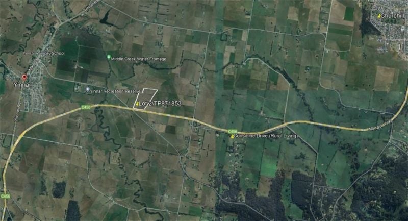 The property is situated between residential land In Yinnar and land zoned as rural living in Considine Drive.