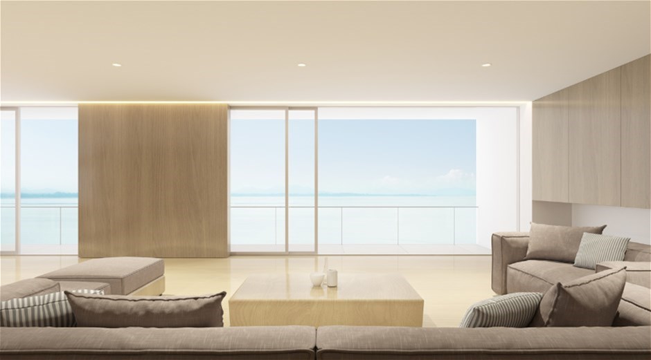 – Floor-to-ceiling glass windows orientated to maximise views and natural light in every home