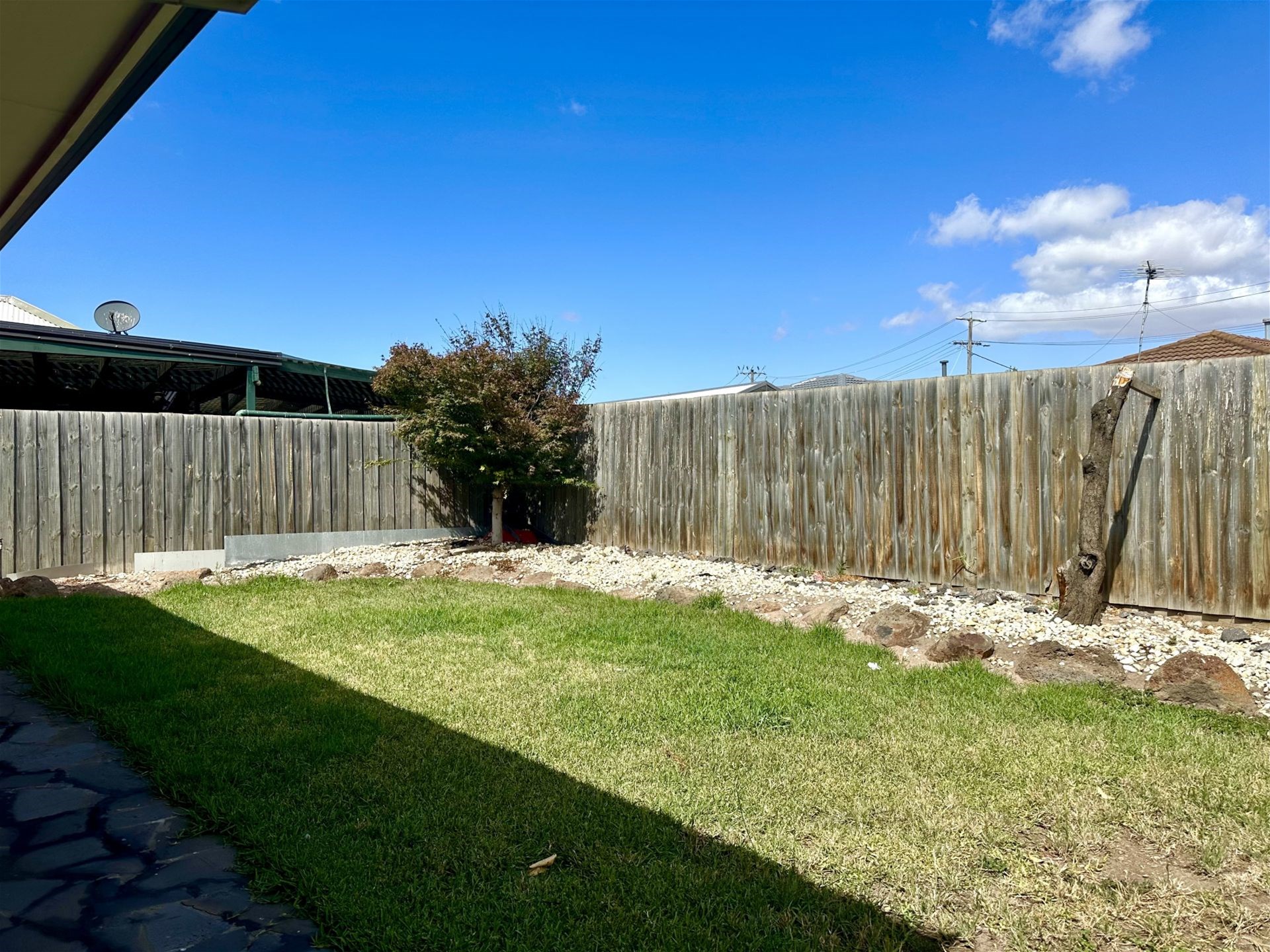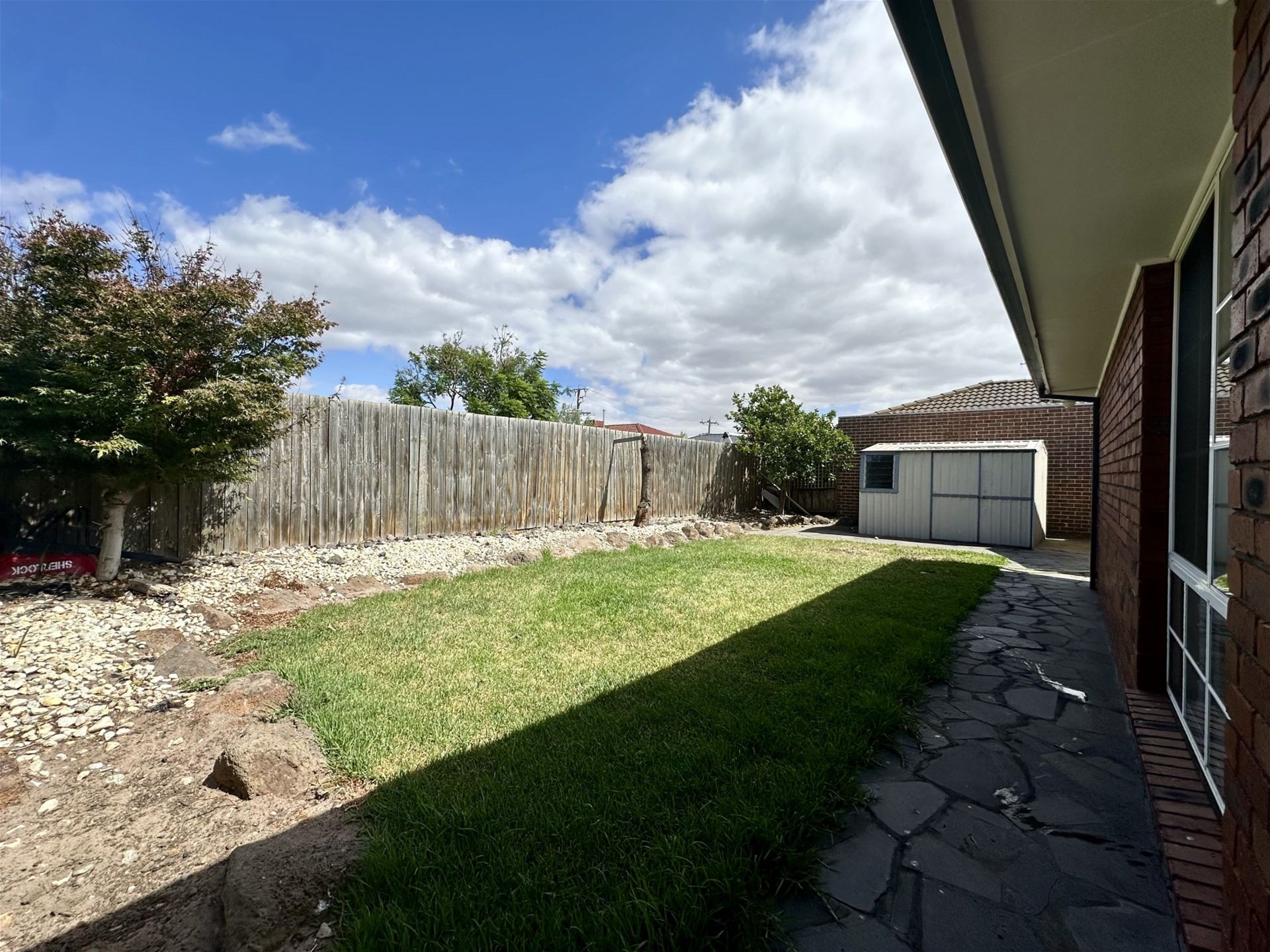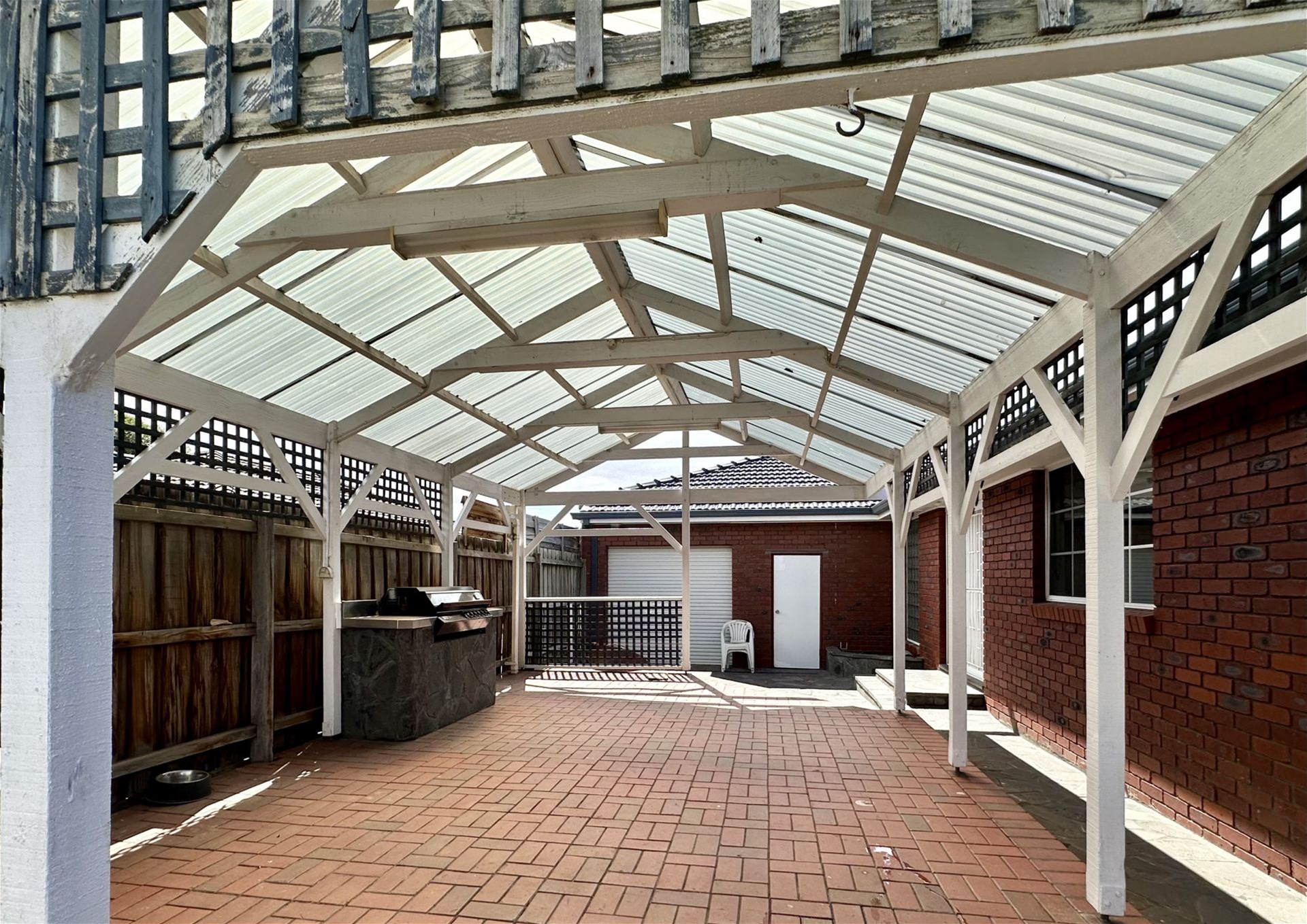 * Covered outdoor entertaining area with built-in BBQ, overlooking a low-maintenance backyard