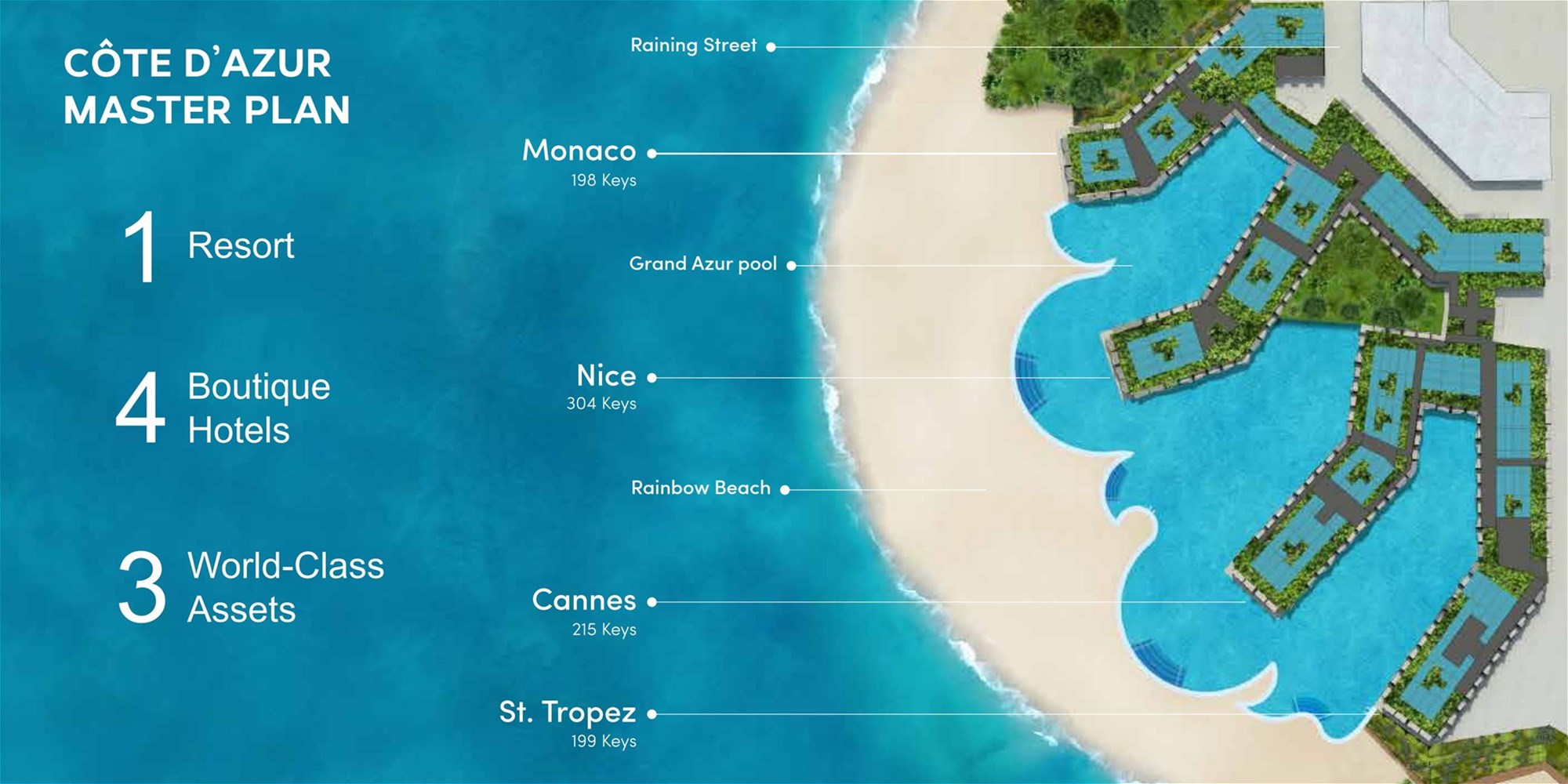 We are thrilled to introduce the ultimate party destination, the French Riviera Monaco – Cote dAzur resort. This luxurious five-star beachfront resort takes inspiration from the elite playgrounds of the South of France and is located on the prime beachfront of Europe Island.