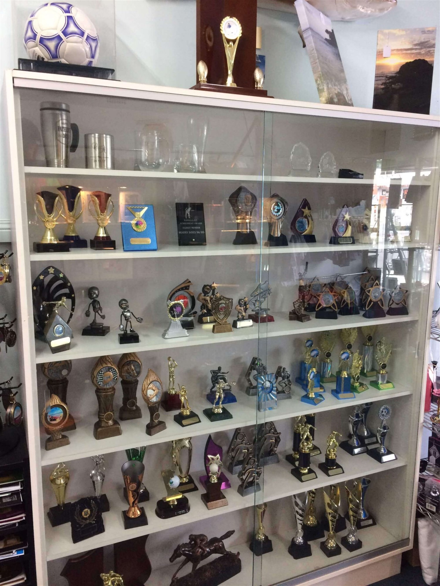 Trustwood Trophies/Binalong Promotional clothing sells trophies, gift ware, promotional goods, work wear, sportswear, polo shirts, t-shirts hats, school & work uniforms and corporate clothing , we also do screen printing, embroidery, engraving and sandblasting and vinyl cutting!