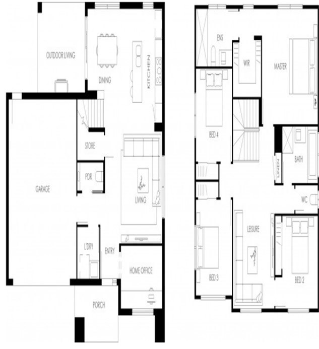 * 4 bedrooms (upstairs), 2 bathrooms (upstairs), 2 spacious open-plan living areas (one downstairs and one upstairs)
